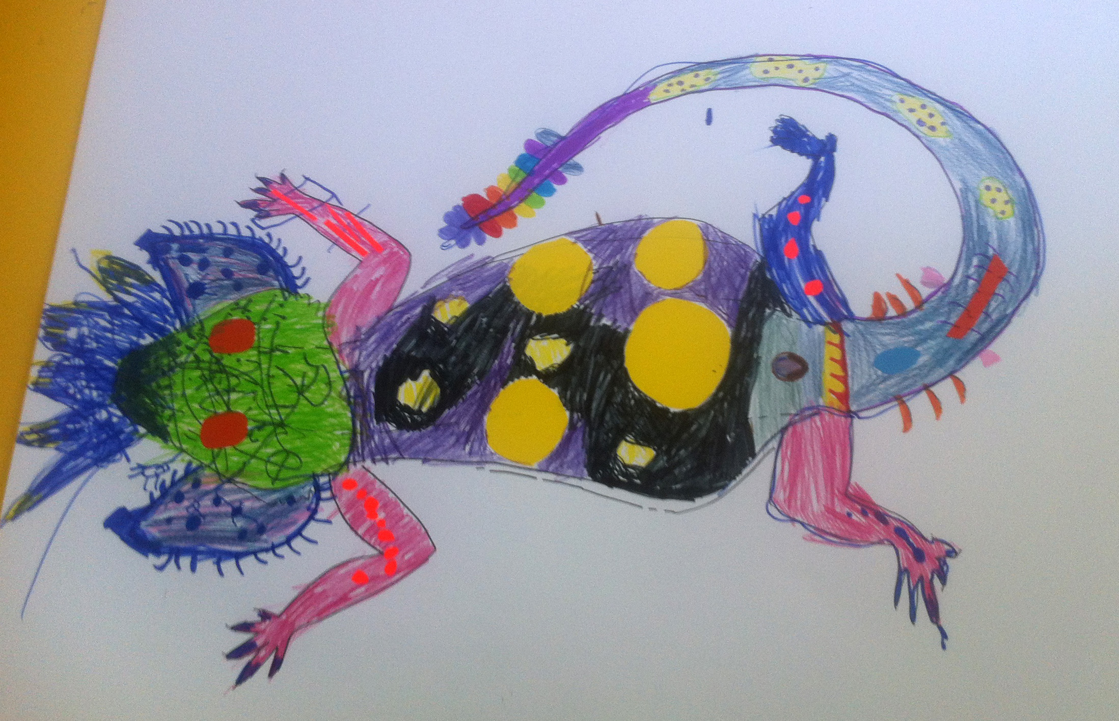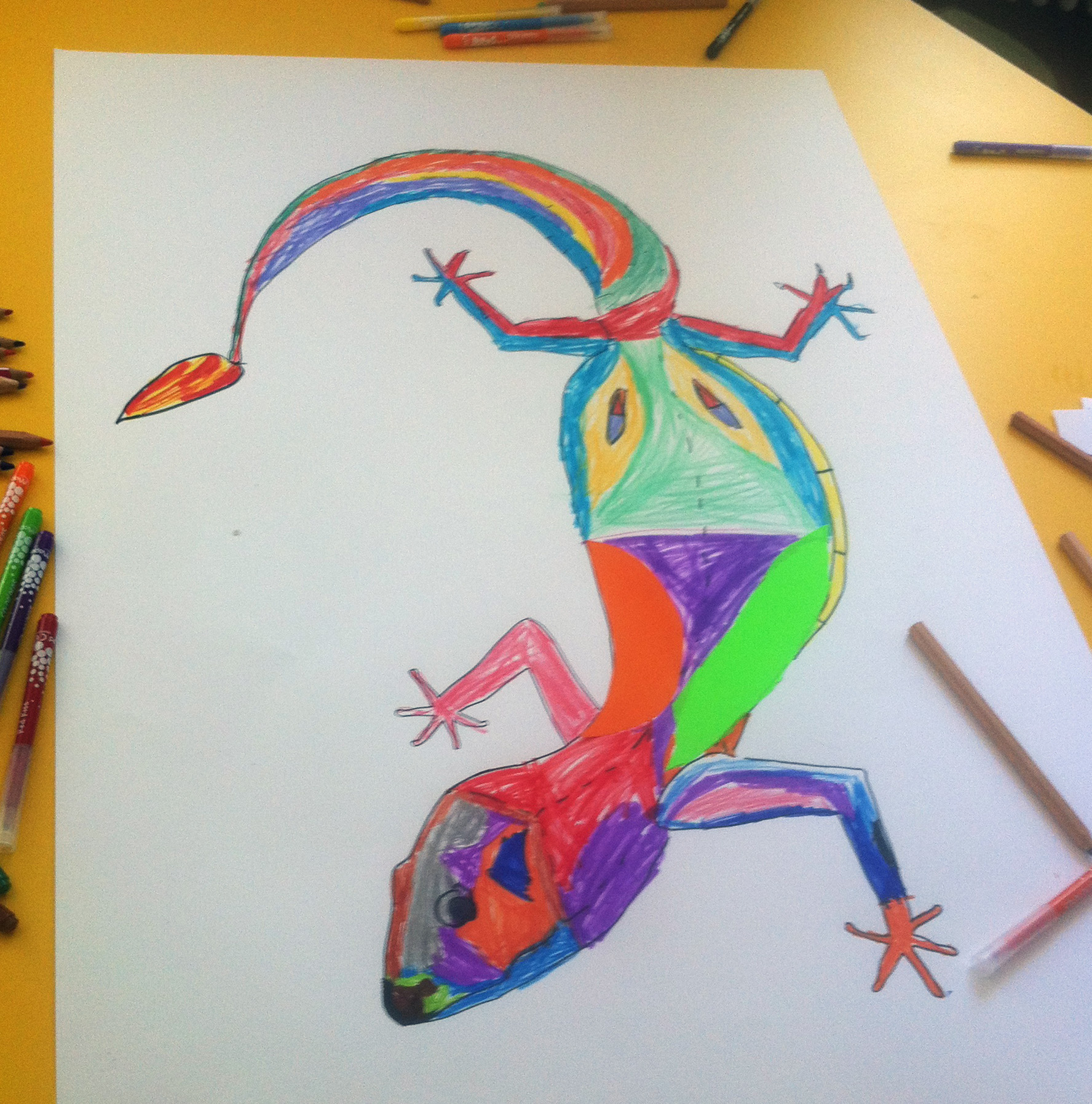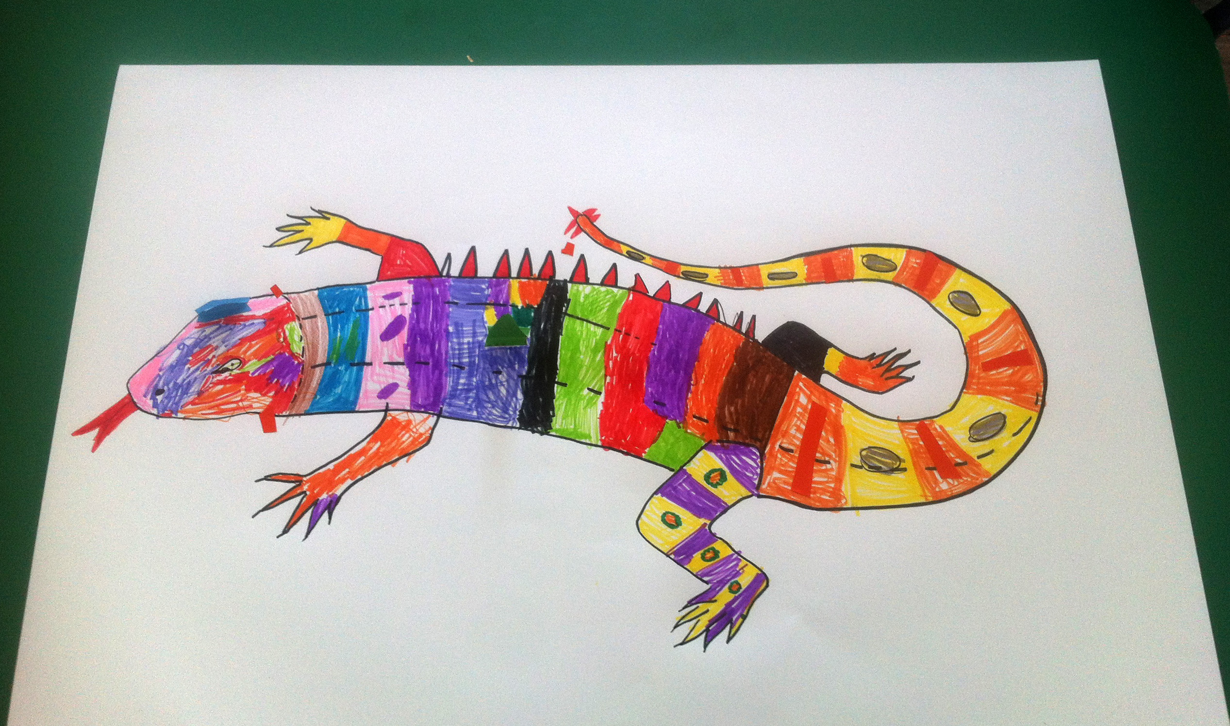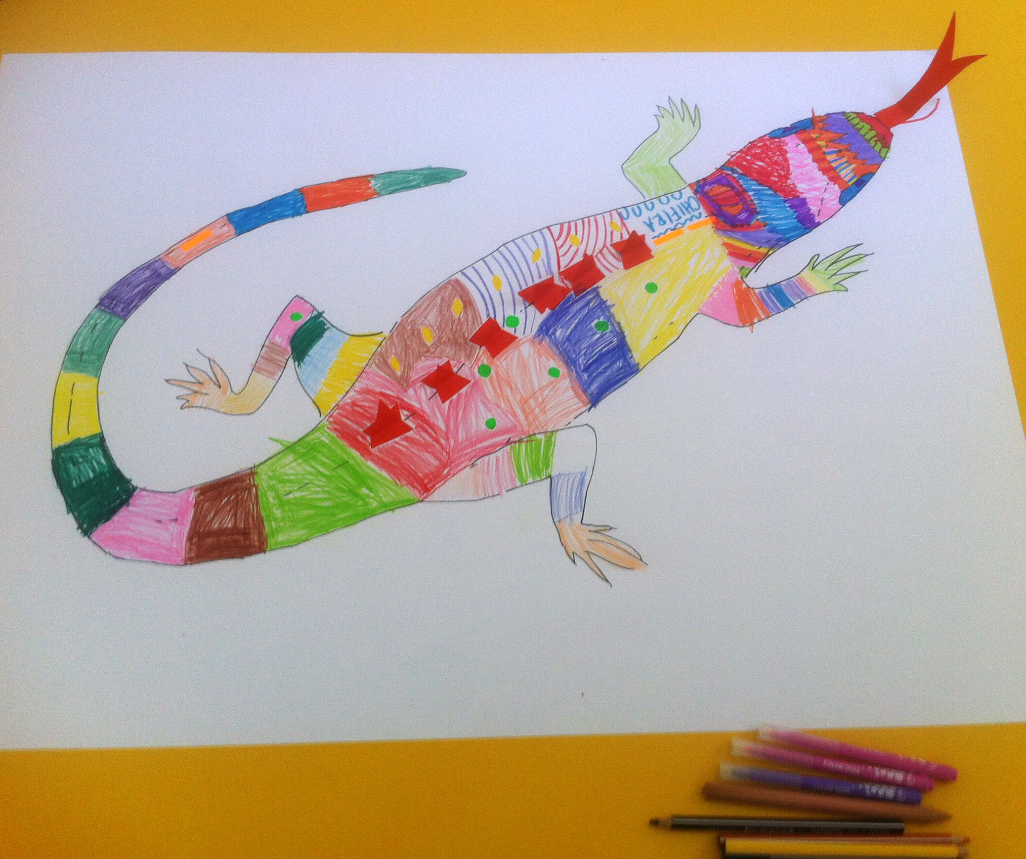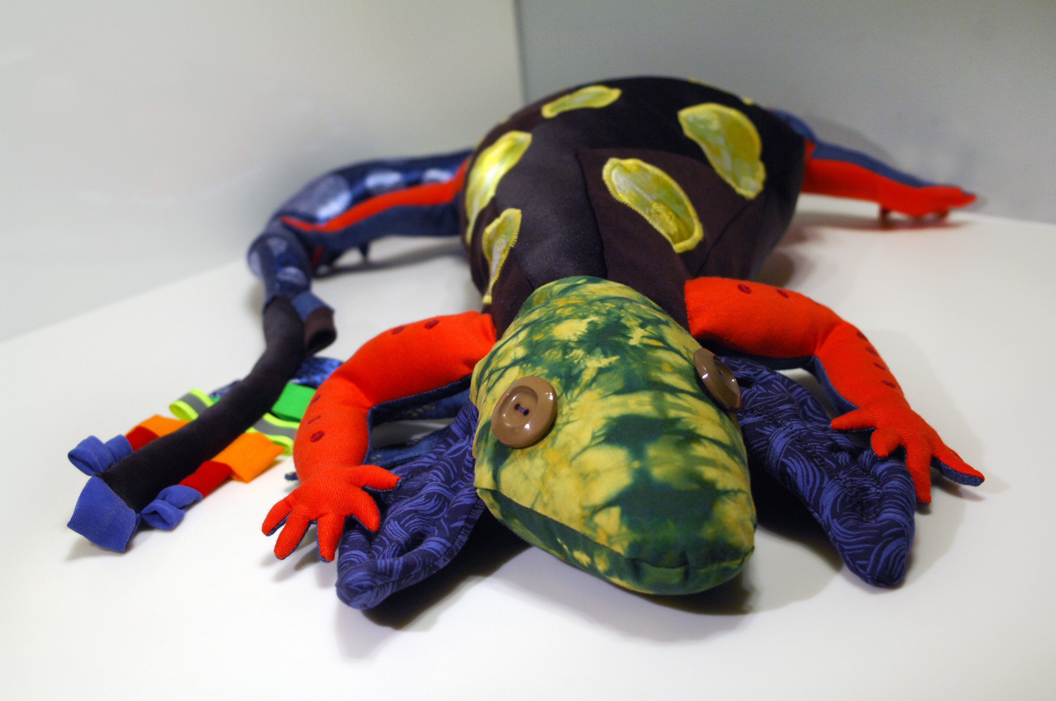 Te kolorowe jaszczurki powstały na wystawę „Idź na żywioł” dla Muzeum Łazienki Królewskie. Najpierw odbyły się warsztaty, na których dzieci wspólnie narysowały cztery jaszczurki, które ja później uszyłam.